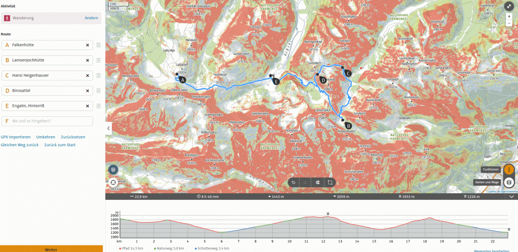 Vorschlag: wir sollten so planen, dass wir spätestens um 12 Uhr in Hinterriss sind. Ca. 4-5 Stunden Aufstieg